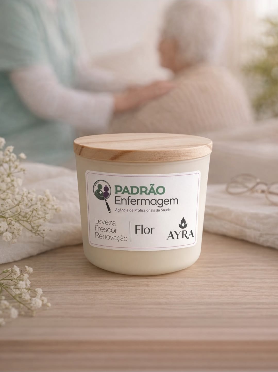 Já a unidade de São José dos Campos apresentou uma iniciativa criativa e cheia de significado. Em parceria com a empresa AYRA Velas Ecológicas, foi desenvolvida uma vela aromática exclusiva da marca Padrão Enfermagem, pensada para transmitir sensações de leveza, frescor e renovação. A proposta é utilizar o item como um gesto de carinho ao presentear famílias e clientes, reforçando o cuidado que vai além do atendimento profissional.